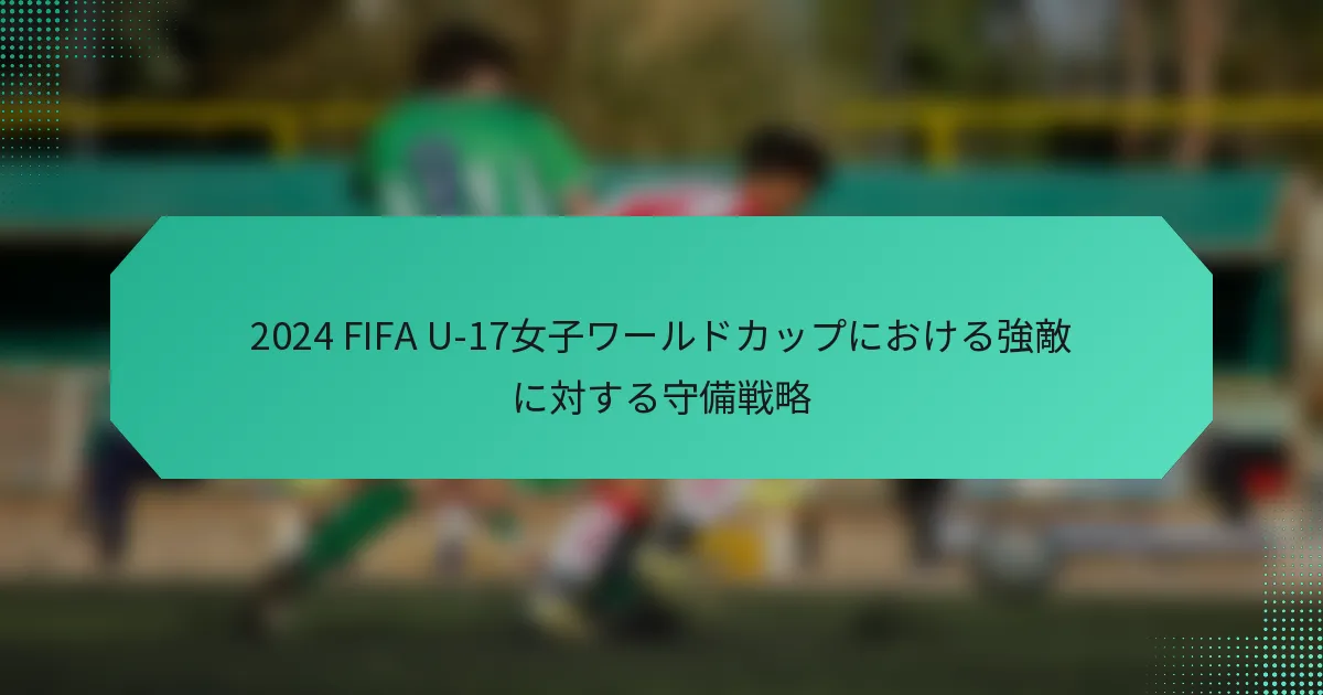 2024年のFIFA U-17女子ワールドカップにおける効果的な守備戦略とは?