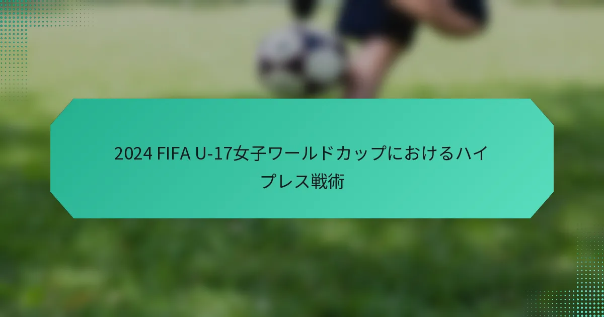 FIFA U-17女子ワールドカップ2024におけるハイプレス戦術の適用方法