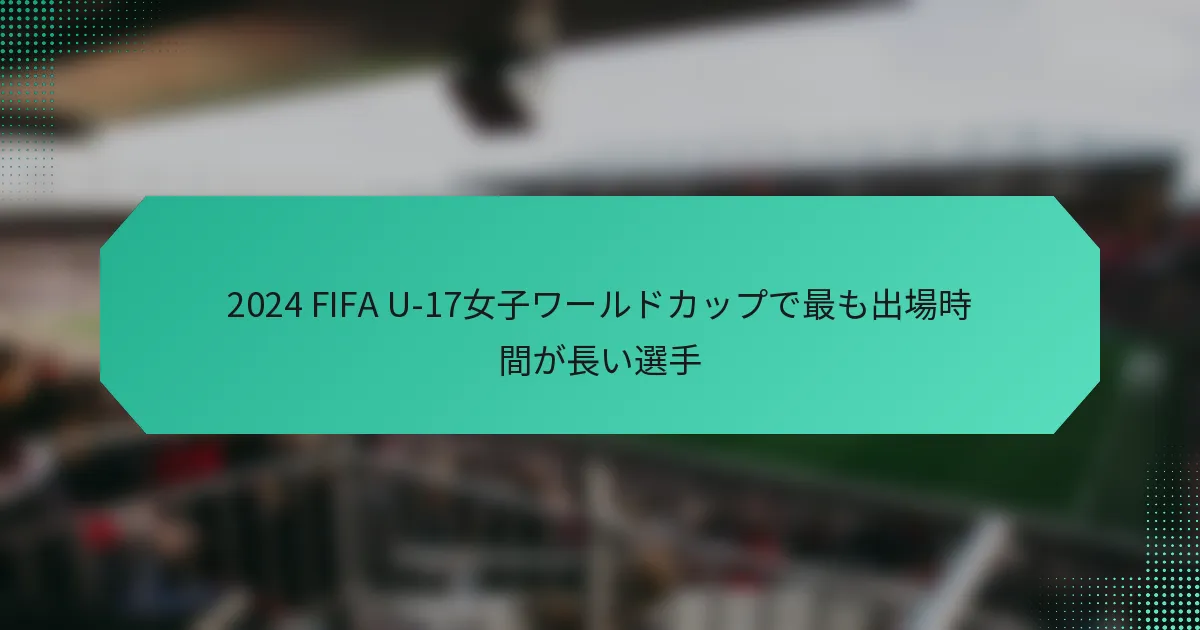 2024年のFIFA U-17女子ワールドカップで最も多くの出場時間を記録した選手たちは、トーナメントを通じて卓越したスタミナとスキルを示しました。彼女たちの貢献はチームにとって不可欠であり、試合の結果に影響を与え、国際舞台での才能を披露しました。