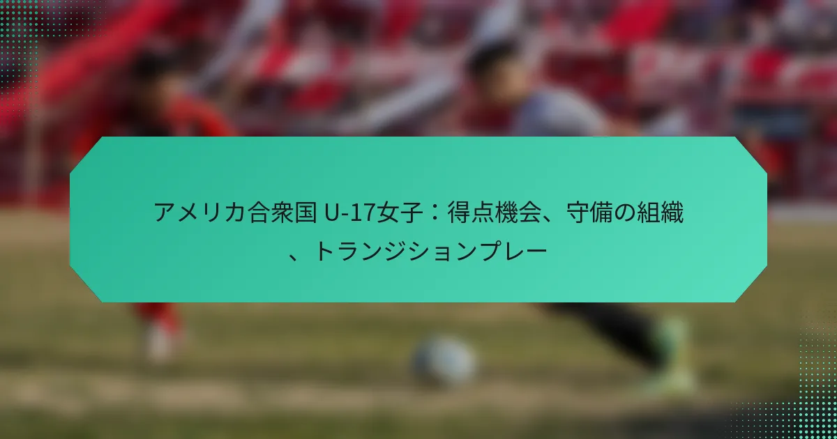 最近の試合では、アメリカ合衆国U-17女子が得点機会につながる効果的なトランジションプレーを示しています。例えば、ライバルチームとの試合では、迅速なカウンターアタックがボールを奪った数秒後に得点につながりました。