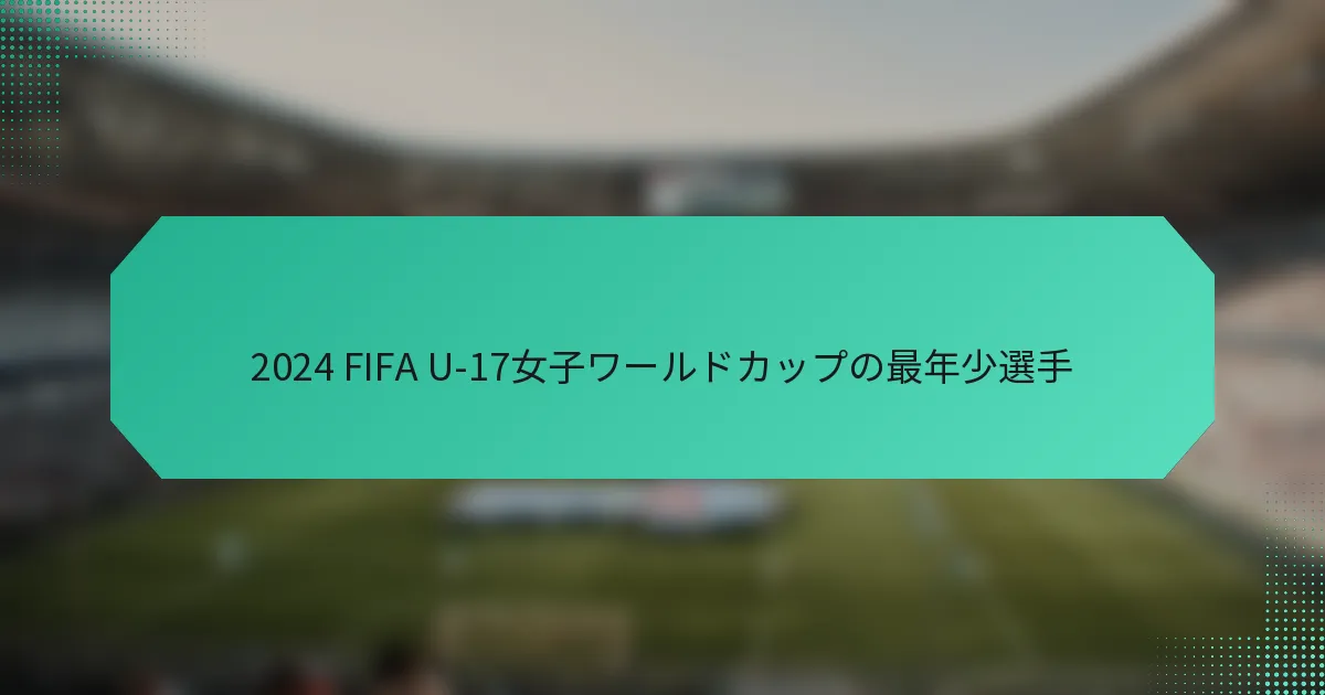 2024年FIFA U-17女子ワールドカップでの最も若い選手たちは、国際舞台での可能性を強調する印象的な統計とパフォーマンス指標を示しています。重要な指標には、得点、アシスト、プレー時間が含まれ、彼女たちのチームへの貢献を反映しています。